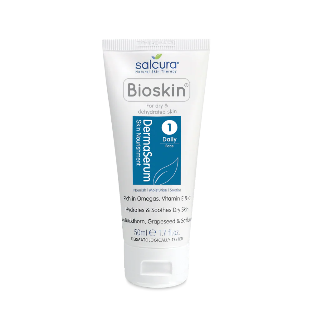 Bioskin Dermaserum er en effektivt fugtighedsserum til daglig brug, formuleret til brug i ansigtet, inklusive omkring øjnene. Dette praktiske og brugervenlige serum nærer tør til meget tør og følsom hud. Denne serum er også velegnet til huden kan være tilbøjelig til at lide af atopisk eksem, psoreasis samt rosacea. Bioskim Dermaserum er dermatologisk testet.